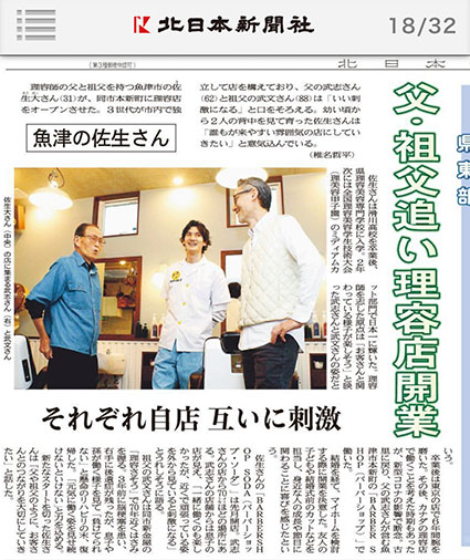 父親と私、そして息子が北日本新聞に掲載されました