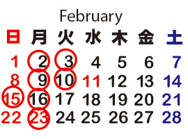 2026年2月のお休み